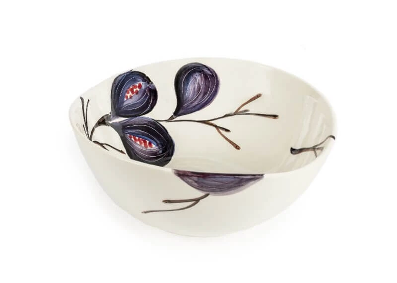 De Oldenhof-schaal heeft een organische vorm met groot vijgenmotief. De schaal is gemaakt van keramiek en heeft een diameter van 25 cm. Het design is 10 cm hoog en te gebruiken voor het presenteren van fruit, (stok)brood of pasta.
