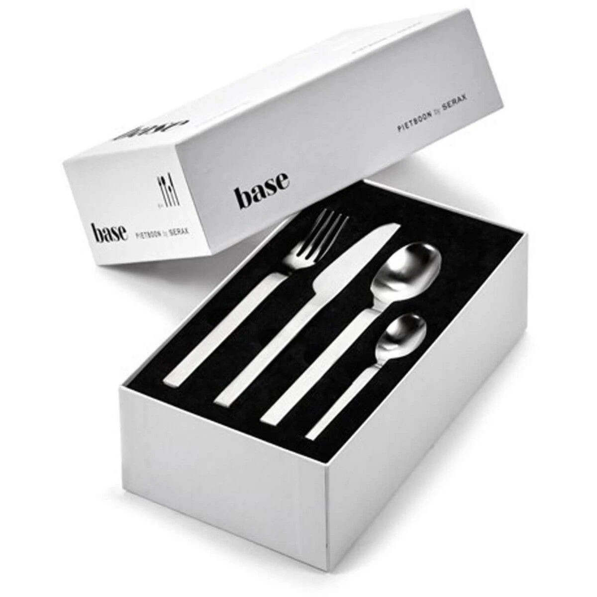 Het Serax Base bestek is ontworpen door de Nederlandse designer Piet Boon. Het bestek is gemaakt van roestvrij staal en heeft een moderne, strakke vormgeving. De bestekcassette bestaat uit 24 delen en is hiermee geschikt voor het gebruik door 6 personen.